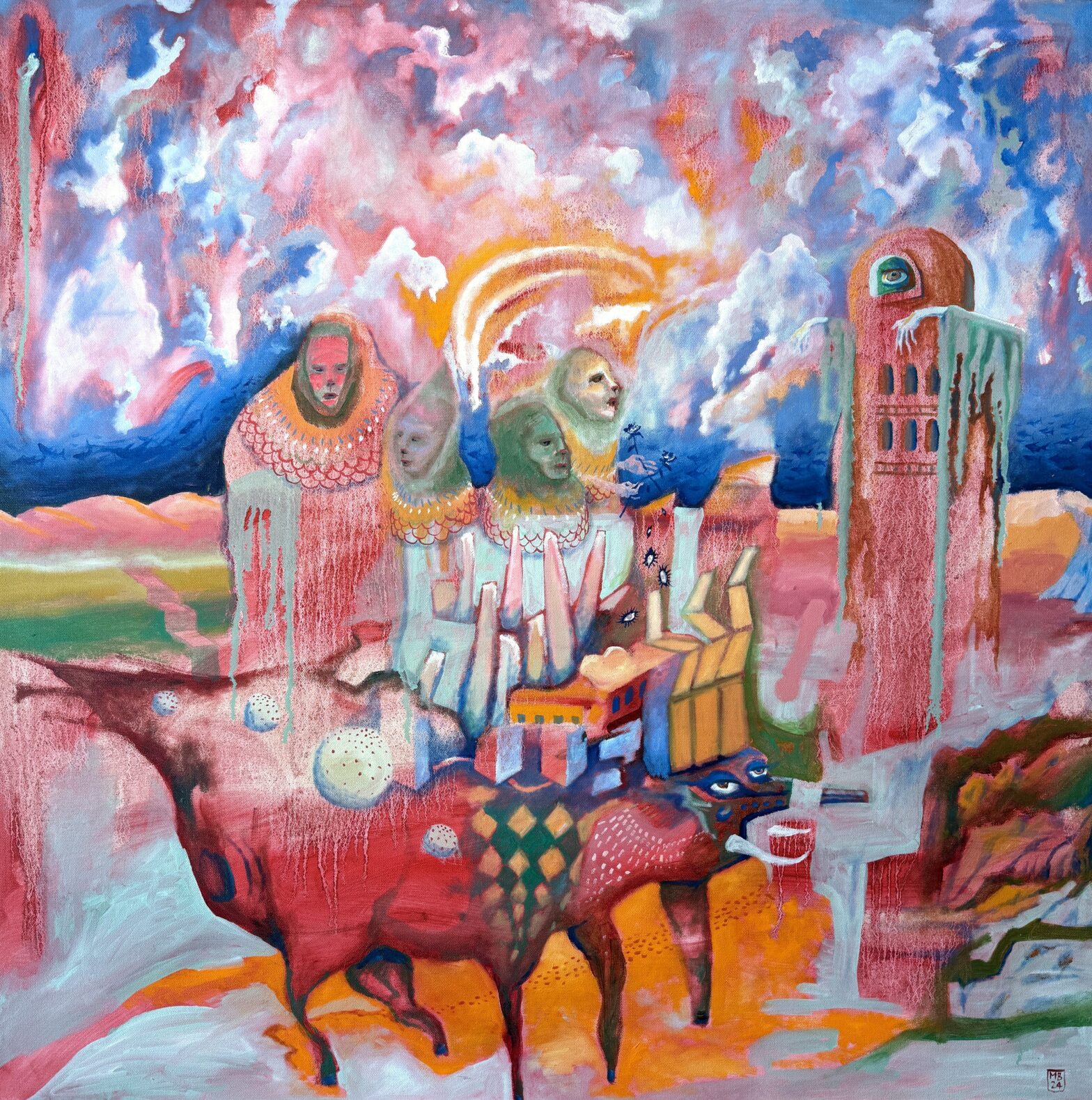 Matthew’s 2025 piece “Sages and the Tower” will be on view at the Werk‘s Rite of Spring III show “Thaw the Ice” This piece features an ominous watchtower presiding over a wandering band of sages atop a mythical beast. Curated by Nathan Beard, on view until March 29th 2026.